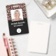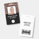 This badge features a trendy modern rose gold and black faux foil leopard print background on top half and a solid black background on the bottom. Customize it with your square photo, name, job title, logo, company name, address or other information, and optional barcode.