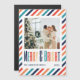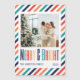 This Christmas Holiday Card features a retro colour typography text "merry & bright", the family's names, year, and photo on a retro stripes background.
