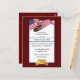 This design features beautiful fully customizable text, beautiful deep burgundy background and flag adorning the top, along with a golden eagle crest at the bottom, which can be fully customizable for text as well.