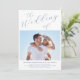 Wedding photo minimalist dusty blue calligraphy script wedding invitations.