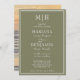 Modern photo boho green lined border minimalist wedding invitations templates with initials at the top for you to customize.
