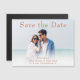 Photo moderne de mariage de couple Enregistrer la carte magnétique Date faire-part avec une police en terre cuite.