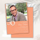 Photo modern minimalist peach 50th birthday party invitation for a fun birthday party. Age can be changed. This invitation is simple and elegant, adult milestone birthday invitation for men and women. The peach background colour can be changed to any colour of your choice using the design tool.
