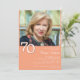 Photo modern minimalist peach 70th birthday party invitation for a fun birthday party. Age can be changed. This invitation is simple and elegant, adult milestone birthday invitation for men and women. The peach background colour can be changed to any colour of your choice using the design tool.
