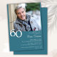 Photo modern minimalist teal 60th birthday party invitation for a fun birthday party. Age can be changed. This invitation is simple and elegant, adult milestone birthday invitation for men and women. The teal background colour can be changed to any colour of your choice using the design tool.