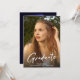 Photo Modern Script Blue Cap Party Graduation Invitation