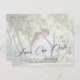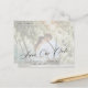 Full bleed tranparent photo minimalist chic wedding save the date postcard template featuring your custom picture in a trendy faux vellum white overlay with black hand written calligraphy script. +++++++++++ Easy to personalize with your details and image on both sides!