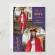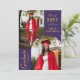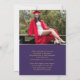 Photo moderne Purple Gold Graduation Faire-part comprend trois de vos photos préférées de votre diplômé, avec l'année de classe de la diplômée, le nom des diplômés et l'école, l'université ou le collège, le diplôme, la qualification ou les plans futurs avec le script de calligraphie or moderne tourbillonnant "Graduate". Au verso, ajoutez votre message personnalisé. Simple, élégant et classe. Créé par ©2025 Evco Studio www.zazzle.com/store/evcostudio