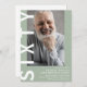 Invitation moderne 60e anniversaire - Design dispose d'un arrière - plan vert sage qui peut être changé à n'importe quelle couleur, une photo de portrait, le texte 'SIXTY' en caractères blancs gras et un élégant modèle de fête d'anniversaire qui peut facilement être personnalisé. Elégant, tendance et parfait pour tout âge !