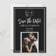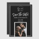 Photo Monogram Save the Date Magnet. Announce your upcoming wedding with this sophisticated 'Save the Date' magnetic card. Featuring a classic black and white aesthetic, and monogram, this design elegantly frames your favourite engagement photo. The bold 'Save the Date!' calligraphy script paired with minimalist typography for names and date creates a timeless feel. It’s the perfect way to ensure your guests remember your special day with this chic and practical keepsake with your favourite engagement photo. This magnetic card is a stylish and memorable way to keep your wedding date top of mind for all your loved ones.