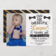 Looking for a cute watercolor photo Mr onederful birthday invitation? This design might be right for you. It features some hand written style fonts, a banner, two bow ties and various decorative elements, on a scanned watercolor paper background. The back of the invitation is black with a faux gold diagonal line pattern. Same design is also available without a photograph at the store. This watercolor Mr onederful 1st birthday invitation is ready to be personalized.