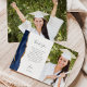 Send your family and friends a special graduation thank-you with these custom photo cards. On the left, the words "thank you" appear in elegant charcoal grey handwriting script typography on a white background over a brief, editable message of thanks to your graduation party guests in copperplate font, with your name below. A navy blue watercolor agate border trimmed with faux gold glitter decorates the left edge. Add a vertical photo to the front and a second, horizontal photo to the back of the card.