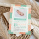 Celebrate your little one’s arrival with this personalized Photo Neutral Quilt Birth Announcement . Made with a quilt style design in sea foam green and salmon, you can add your baby’s name, birth date, weight, length, and time of birth. Customize with your favourite newborn photo to create a one-of-a-kind design that’s perfect for sharing your news with family.