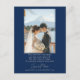 The reverse continues the theme of elegance and personalization, featuring a captivating photo of the couple set against the iconic backdrop of Mount Fuji. A deep navy border frames the moment with sophistication, while a warm message beneath the image expresses joy, appreciation, and anticipation. Together, the couple’s words and photo create a heartfelt memento for guests, one that celebrates connection and shared happiness.