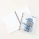 A personalized spiral notebook with a cute photograph of a little snowman. Standing outside in the winter with snow falling all around. This cute little guy is dressed up in blue knitted hat and scarf.
