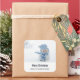 Christmas stickers with a cute photograph of a little snowman. Standing outside in the winter with snow falling all around. This cute little guy is dressed up in blue knitted hat and scarf. Personalize with a name.