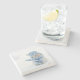 A stone coaster with a cute photograph of a little snowman. Standing outside in the winter with snow falling all around. This cute little guy is dressed up in blue knitted hat and scarf.