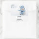 Party favour thank you stickers with a cute photograph of a little snowman. Standing outside in the winter with snow falling all around. This cute little guy is dressed up in blue knitted hat and scarf.