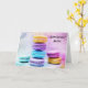 Greeting card with a delicious photo featuring a stack of colourful macarons.