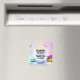 A birthday favour magnet with a delicious photo featuring a stack of colourful macarons.