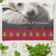 Photo of Cute White Dog Red Christmas Trees Kitchen Towel