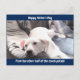 Photo of Cute White Lazy Dog With Best Friend Dad Holiday Postcard