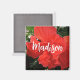 This magnet features a photo of a bright orange double hibiscus flower and a beautiful fancy script to customize the name.