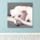 Photo of White Dog With Tail on Face Grey Canvas Print