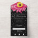 Optional Guest and Return Addresses. Delete if you prefer to use labels/handwritten addresses. Instructions for Guests Addresses: Address each invitation for your guests individually and please, after entering each guest's unique address, add to your cart, then click on the link in your cart to get back to the product page to enter the next guest's address; add to cart again and repeat until you have all your invitations addressed. You will see each card separately in your cart. Please proofread each address before placing order. To proofread just click on the link for each card in your cart. Likewise you can easily just do your proofreading when clicking back to the product page, before you add the next address. All In One Tear Away RSVP Wedding Photo Invitations. Elegant Black and Pink Gerbera Stars and String Lights Simple English Cottagecore Aesthetic Your Photo Romantic Pink Gerber Daisy Simple Modern Wedding Invitations. Includes Easily Detachable Postcard RSVP. The Pink on the outside background colour is easily changed as well as the colour of the fonts. Floral Wedding Themes. Photo All In One Wedding Invitation