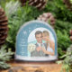 This personalized snow globe makes a beautiful gift for newlyweds. The teal front features the phrase “Our First Christmas” along with a dedicated space for a photo of the couple, as well as their names and wedding date. On the back, there’s room for a second photo and customizable text—perfect for including their names and their wedding date. Ideal for a keepsake holiday gift.