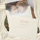 Photo Overlay Script Return Address Terracotta Typography on Cream Boho Wedding. Bohemian inspired earthy tones for your boho wedding. Change text as required and replace the sample photo printed on the inside with your own favourite. It is behind a gradient overlay so fades away towards the bottom. Easily personalise your name and return address details on the back flap.