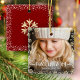 “Peace, love & joy.” A playful visual of champagne gold glitter snowflakes, white handwritten typography and confetti dots against the photo of your choice, helps you usher in Christmas and New Year. Feel the warmth and joy of the holiday season whenever you relax with this stylish and modern personalized photo keepsake ornament. A single, large sparkly champagne gold snowflake and white confetti dots overlay a dark brick red background on the back. Matching and coordinating cards, envelopes, stickers, giftwrap and other products are also available in my “Christmas Peace, Love & Joy” store collection. Order this as a housewarming gift for someone special, or even yourself!