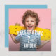 Replace with your photo, change texts front and back, and add more information in the back if you like! You can change the background colour of backside of your invitation using the Design Tool.