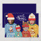 wearing Christmas jumpers in Santa, Penguin, Reindeer and Snowman styles.