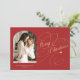 Elegant stylish Merry Christmas faux gold classic calligraphy script family photo red holiday card with your custom personalized text on both sides. +++++++++ PLEASE NOTE that the background colour is editable. You can change it after selecting CUSTOMIZE option down below the PERSONALIZE IT menu. If you don't feel at ease changing it, please ask Zazzle Live Design Service or the designer for help.
