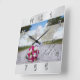 Photo and Personalized Wall Clock Wedding Gift Ideas. Type in Couple's Names, Wedding Date and Couple's Engagement or Wedding Photo or Image or Delete. CALL Designer Linda: 239-949-9090 for HELP personalizing this square, or choose round wedding wall clock or design a different personalised wedding gift for couples. We have THOUSANDS of wedding gift ideas, party supplies and decorations. Give memorable wedding gifts.