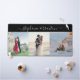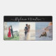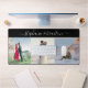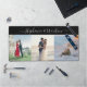 Grand bureau personnalisé ou tapis d'espace de travail avec 3 de vos propres photos et texte de nom personnalisé dans une police de calligraphie moderne tendance tourbillonnante.