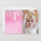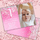 Photo Pink Glitter 1st Birthday Invitation Girly Pink Glitter 1st birthday party invitation for a 1 year old girl with modern script writing and fun foil balloons.