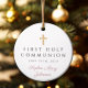 Personalized Photo Pink Religious Cross Girl First Communion Ceramic Ornament.