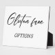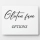 Plaque de table "sans gluten" avec de l'Easel est un complément charmant à votre décor de mariage ou d'événement spécial. Réalisée avec élégance et style, cette plaque présente le type de nourriture diététique pour vos invités dans une belle écriture/police manuscrite. La plaque est montée sur un chevalet robuste, ce qui la rend facile à afficher sur n'importe quelle tablette ou étagère. Imprimée sur des matériaux de haute qualité, notre plaque est durable et durable, en s'assurant qu'elle sera un gardien chéri pour les années à venir. C'est la façon idéale d'ajouter un geste de soin avec différents types de nourriture et de créer une atmosphère vraiment mémorable pour vous et vos invités.