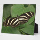 Cette magnifique plaque est ornée d'une photo d'un beau papillon tropical. Cette espèce est appelée papillon à aile longue Zebra (Heliconius charithonia) et est recouverte de rayures vives en noir et blanc sur chaque aile. Il vient d'Amérique. La photo a été prise en utilisant la macro photographie pour un résultat étonnamment détaillé.