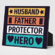 Plaque de héros maris protecteur père Pour un affichage professionnel sans cadre, recevez une plaque d'affichage personnalisée! Imprimées en utilisant un processus de sublimation, les couleurs de votre image sont reportées directement sur le panneau rigide pour une image étonnamment brillante. Protégé par un film résistant aux UV, votre plaque sera protégée contre les rayures et la décoloration pendant des années.