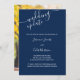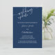 Custom Photo Wedding Postponement Card - add your own photo on the back. This navy blue card features elegant handwritten script for the words "wedding update" and the names of the bride and groom. The sample wording reads "Due to recent events the wedding of [your names] has been postponed. We will let you know as soon as we set a new date. It was a difficult decision and we thank you for your understanding". The template is set up ready for you to add your photo, your names and to edit as much of the text as you wish.