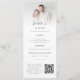 Photo Program Icon with Menu Wedding. A multi purpose design combining your program and timeline with icons and your menu on the other side, as well as a Qr code for guests to share their photos. Simply change the sample URL to that of the url of the website where your guests can upload their photos. An informal set typography in black for the main headings Menu and welcome, complementing the rest of the text which you can easily personalise. Replace the sample photo with your own favorite.