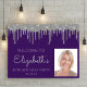 Welcome guests with this chic, glamourous 40th birthday party photo sign, featuring a sparkly silver faux glitter drip border and purple background. Easily replace the sample image with a photo of the guest of honour. Personalize it with her name in silver grey handwriting script, with the birthday and date below in sans serif font.