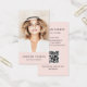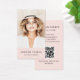 Modern, vertical, light blush pink custom photo business cards with your name, title and photo on the front. Customizable template fields for name, title, contact information and QR code on the back. You can change background and font colours, move and resize elements with the design tool. Follow us on Facebook: @businessstationery for more products, news, sales and more.