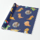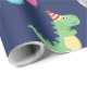 Photo-Ready Cute Dinos on Dark Blue Wrapping Paper