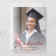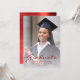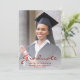 Modern graduation announcement featuring a custom vertical photo. The word "Graduate" appears in red script, with the graduate's name, school and year of graduation below in sans serif font. Easily replace the sample image with your own graduate's photo. A white gradient screen helps ensure the text pops. The reverse features a coordinating red faux brushed metal image. Ideal for high school or college graduation.