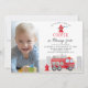 Photo Red Firefighter Fire Engine Birthday Invitation