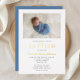 Personalized Photo Religious Cross Blue Boy Baptism Gold Foil Invitation